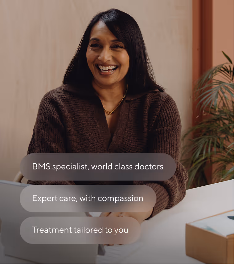 At Menopause Care, we offer personalised appointments with menopause specialists, alongside access to additional support where this may be helpful. This can include appointments with CBT and hypnotherapy specialists, nutritional consultations, and mentoring.